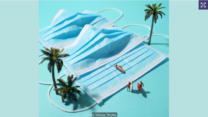 Tatsuya Tanaka used masks in the 31 March entry of his Miniature Calendar (Credit: Tatsuya Tanaka)