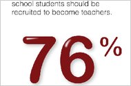 A Phi Delta Kappa/Gallup poll released this week found that 76 percent of Americans believed that high-achieving high school students should later be recruited to become teachers, and 67 percent of respondents said that they would like to have a child of their own take up teaching in the public schools as a career.