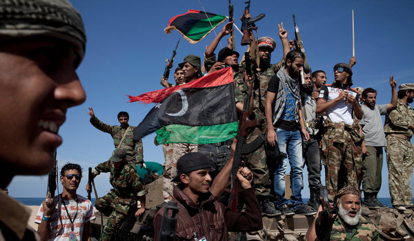 The official version of events offered by Libya’s new leaders — that Colonel Qaddafi was killed in a cross-fire — was not supported by the photographs and videos that streamed over the Internet all day long, raising questions about the government’s control of the militias(民兵) in a country that has been divided into competing regions and factions(派别).