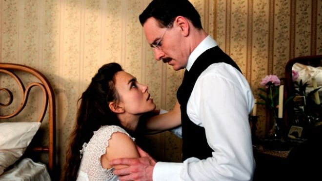 Michael Fassbender got more than he anticipated when he signed on to play Dr. Carl Jung in David Cronenberg’s “A Dangerous Method.” Not only did he get to take Keira Knightley’s incredibly crazed(疯狂的, 癫狂的) character Sabina Spielrein under his wing for some severe psychoanalysis(心理分析), but he got to spank her naked – several times over.