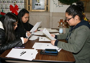 At the James A. Farley Post Office in New York, volunteers read letters as part of Operation Santa Claus, a program that enables postal employees, the general public and corporations to respond to letters written to Santa by needy families.