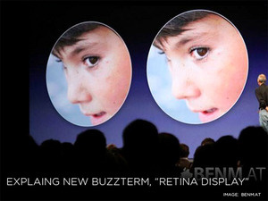 Steve Jobs mentioned an all-new "Retina Display" for the iPhone 4. But what exactly is a "Retina Display?" Apart from a marketing buzzword, it's essentially a high-end(高端) screen with four times as many pixels in the same screen real estate.