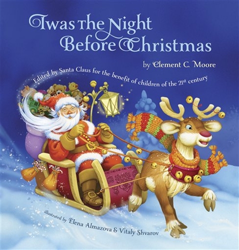 This book cover image shows "Twas the Night Before Christmas" by Clement C. Moore. This new version of "Twas the Night Before Christmas" has eliminated all references to a smoking Santa.