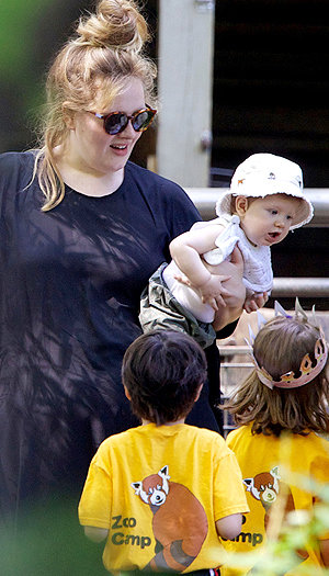 The "Rolling In The Deep" songstress took her 8-month-old to the Central Park Zoo in Manhattan on Wednesday with a group of pals, and was snapped holding her baby with one arm.