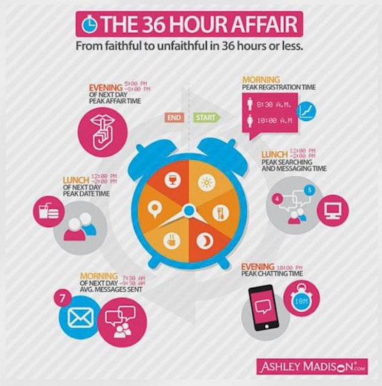 Peak registration time for new members is between 8:30 a.m. to 10 a.m., according to the site's CEO Noel Biderman. "It's twice as busy in that time period than any other during the day," he said. "Our servers have to be ready. There's a nighttime decision to start an affair in the morning."