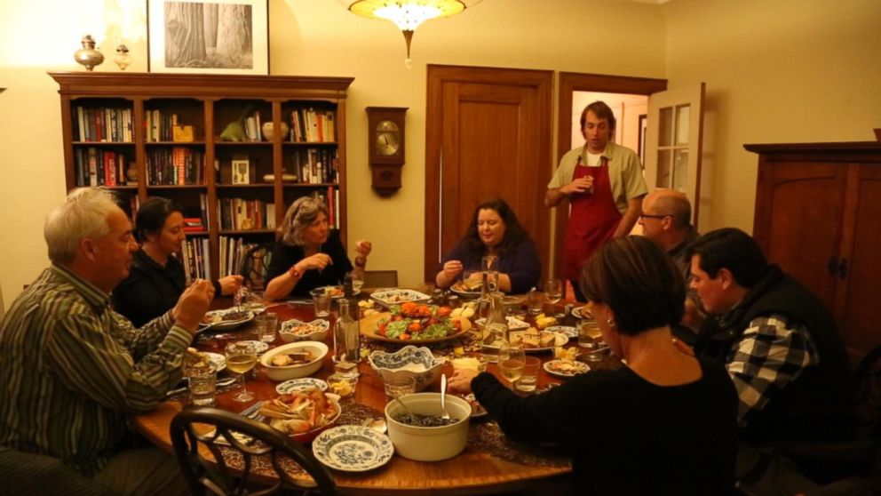 Mayfield used EatWith to offer a San Francisco-themed dinner: clam chowder, sourdough bread to start. “The main course is half a crab steamed cause that’s in season now, squid ink pasta with cream and herb sauce and then we have a home-made corn bread stuffing that I made with local chorizo.”