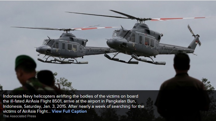 The plane crashed Dec. 28, halfway into a two-hour flight from Surabaya, Indonesia's second-largest city, to Singapore. Minutes before losing contact, the pilot told air traffic control that he was approaching threatening clouds, but was denied permission to climb to a higher altitude because of heavy air traffic.