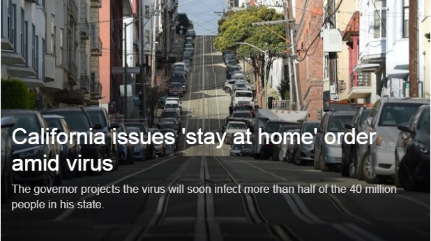 California has issued a "stay at home" order to residents as it tries to stem the march of the coronavirus across the most populous US state.