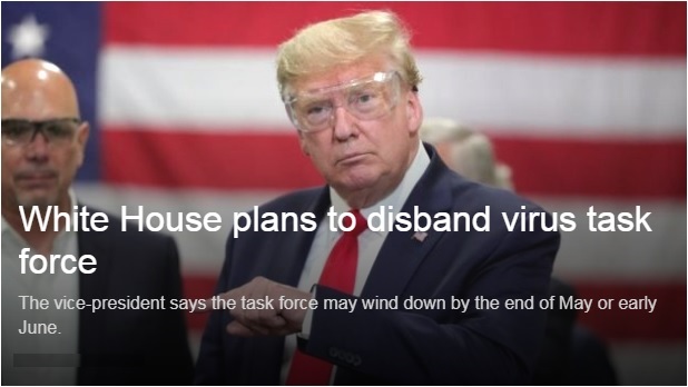 US President Donald Trump has confirmed the White House coronavirus task force will be winding down, with Vice-President Mike Pence suggesting it could be disbanded within weeks.