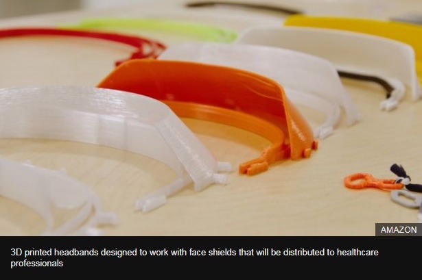 Amazon says it will produce hundreds of thousands of face shields for medics and sell them at cost price in the US.