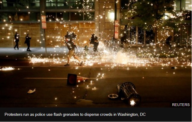 Riot police clashed with protesters in New York, Chicago, Philadelphia and Los Angeles, firing tear gas and pepper bullets to try to disperse the crowds.