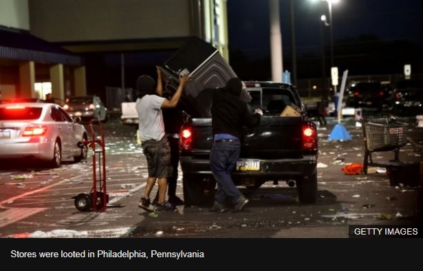 Violence has erupted in cities across the US on the sixth night of protests sparked by the death in police custody of African-American George Floyd.
