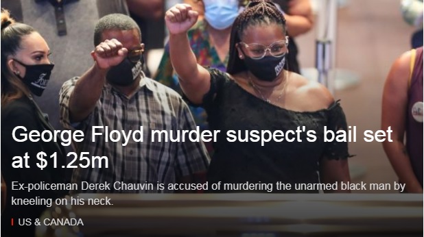 Judge Jeannice M Reding set a bail of $1.25m with no preconditions, or $1m with conditions that include Mr Chauvin not contacting Mr Floyd's family, surrendering his firearms and not working in law enforcement or security as he awaits trial.