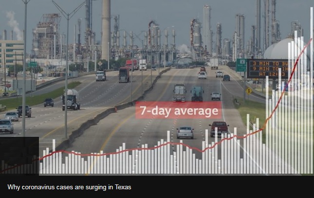Texas Governor Greg Abbott has ordered face coverings to be worn in public as coronavirus cases rocket in the state.