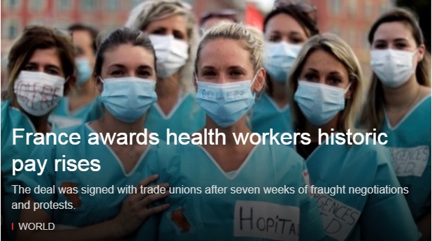 France has approved pay rises worth €8bn (£7.2bn; $9bn) for health workers, with the government hailing their role in fighting coronavirus.