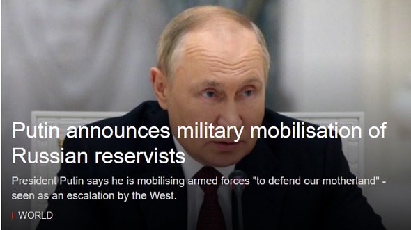 Russia’s President Vladimir Putin has announced “partial mobilisation” in Russia “to defend the motherland, its sovereignty and territorial integrity, the security of our people.”