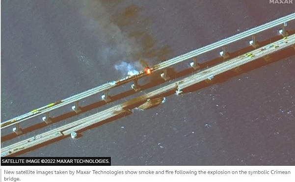 But new satellite images released on Saturday showed smoke and fire near the collapsed areas of the 19km (12-mile) bridge, which was opened with much fanfare four years after Moscow annexed Crimea.