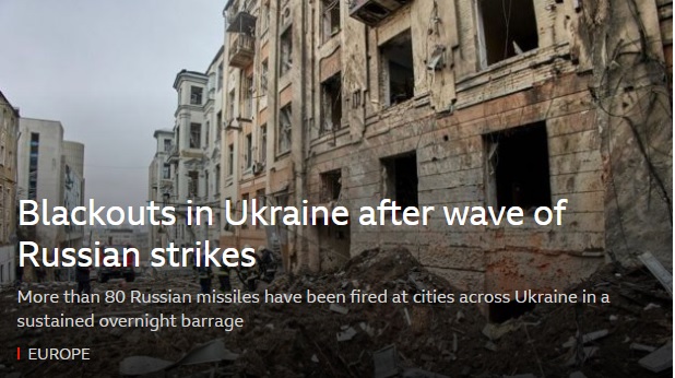 She told BBC Radio 4's Today programme what she heard during the night: "The air raid siren was on for seven hours. So we've heard a number of explosions. We don't know if it was air defence systems or the missiles hitting the infrastructure, but it was pretty loud. And everything repeated a couple more times later."