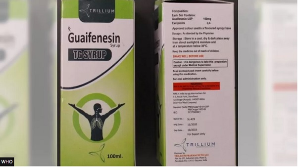 The WHO said that the tested samples of Guaifenesin TG syrup, made by Punjab-based QP Pharmachem Ltd, showed "unacceptable amounts of diethylene glycol and ethylene glycol".
