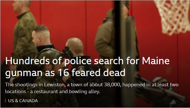 A suspect is still at large after a mass shooting event in Lewiston, Maine left at least 16 feared dead and dozens injured.