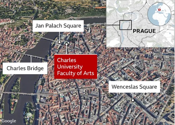 The shooting began at around 15:00 local time (14:00 GMT) on Thursday at the Faculty of Arts building of Charles University off Jan Palach Square in the centre of the Czech capital.