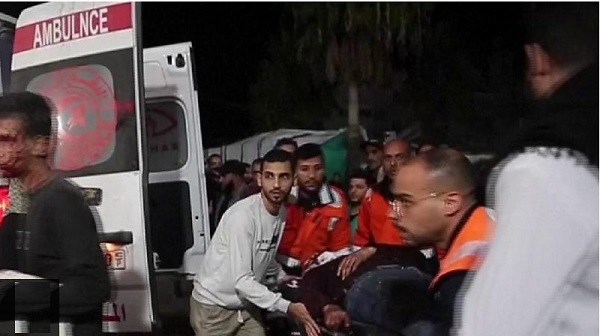 Dozens of injured people were rushed from Maghazi to nearby Al-Aqsa Hospital with footage showing some children's faces covered in blood and body bags piled outside.