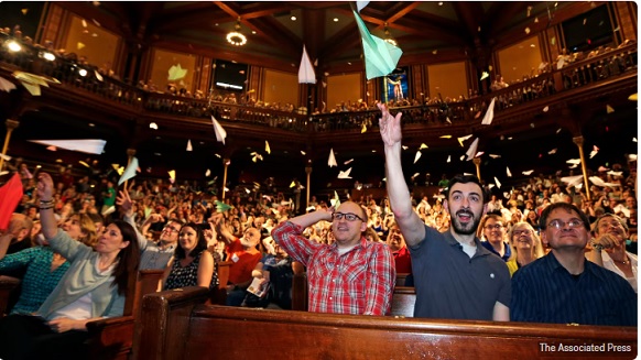 The ceremony to celebrate winners Thursday night at Boston University began with a longtime tradition: the audience pelting the stage with paper airplanes. Several of those who couldn't attend had their speeches read by actual Nobel laureates including Esther Duflo, who won the Nobel Prize for her experimental approach to alleviating global poverty.