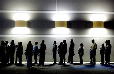 Shoppers stand in line outside Circuit City in Houma, La. before sunrise on Friday, Nov. 28, 2008. Many shoppers waited over night to be one of the first to enter the store when it opend at 5 a.m.