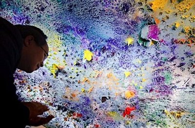 Room XX : A guest applauds during the inauguration of the renovated Room XX at the United Nations offices in Geneva. Top contemporary Spanish artist Barcelo was commissioned (委托:) to create a unique ceiling painting for Room XX, which will host the UN Human Rights Council. (AFP/Fabrice Coffrini) Photo Tools