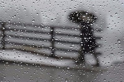 Winter weather : A woman protects herself against the snow in Spitzingsee, southern Germany.