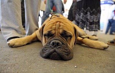 Bit of shut eye : A dog takes a nap during a CACIB international dog show in the southern Israeli town of Arad.