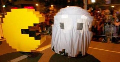 Revelers (饮酒狂欢者) march in the annual Greenwich Village Halloween Parade in New York, October 31, 2008.