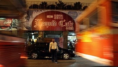 Pedestrians (步行者) walk past the Leopold cafe, the site of one of the terror attacks, in Mumbai. India's government reassured the nation Monday the economy was in safe hands after a cabinet reshuffle (改组) following the deadly assault by Islamic militants on the financial capital Mumbai. (AFP/Pal Pillai) |