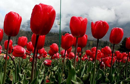 Tulips are seen in full bloom in Indira Gandhi(甘地) Memorial Tulip Garden in Srinagar, Indian Kashmir.