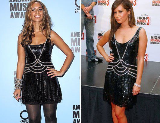 These ladies both sing, and apparently have similar fashion sense as well. Leona Lewis and Ashley Tisdale both wore this Jenny Packham dress; Lewis to the 2008 American Music awards, and Tisdale to the "High School Musical 3" premiere in Melbourne, Australia.