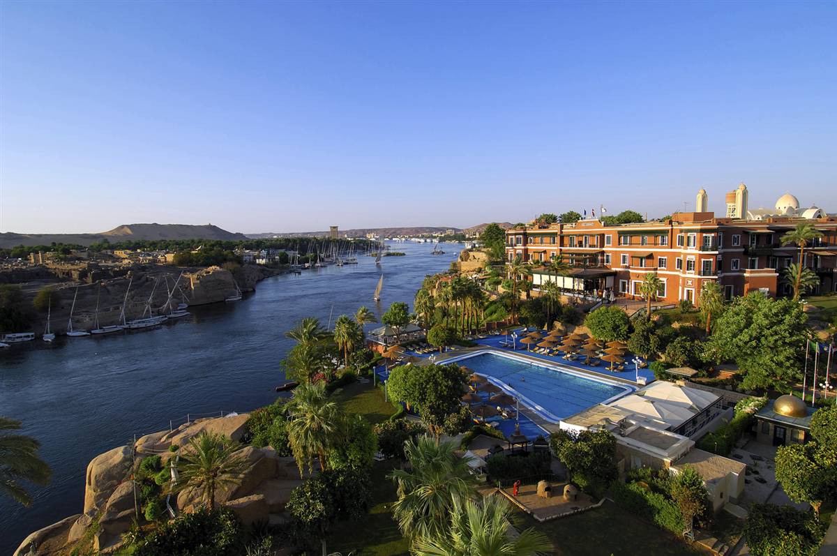The Old Cataract Hotel is perched(暂栖) atop a hill overlooking the River Nile in Aswan, Egypt.
