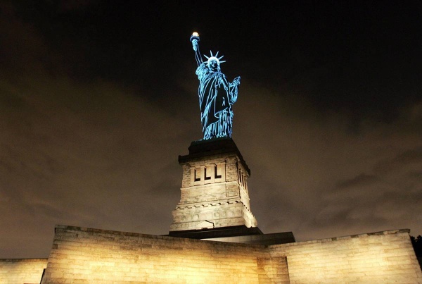 The Statue of Liberty is lit up for a party thrown by French champagne maker Moet & Chandon in September 2006