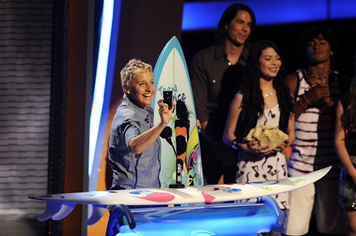 Ellen DeGeneres(艾伦·德杰尼勒斯) accepts the Choice Twit award at the 2009 Teen Choice Awards.