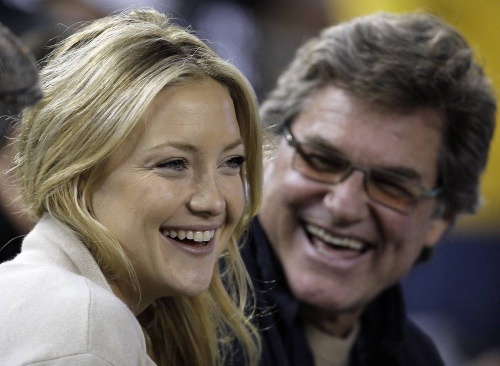 Actors Kate Hudson(凯特·哈德森) and Kurt Russell(库尔特·拉塞尔) are seen during the fourth inning of Game 2 of the World Series between the New York Yankees and Philadelphia Phillies Thursday, Oct. 29, 2009, in New York.