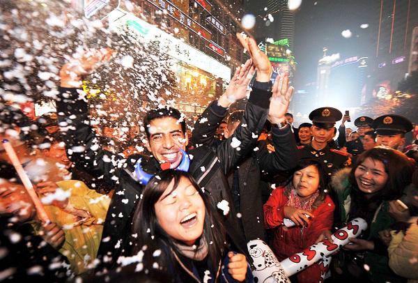 Thousands gather to celebrate Christmas Eve at the center of southwest China's Chongqing municipality(直辖市) on Thursday. Christmas is becoming an increasingly popular commercial(商业的) holiday despite(尽管) official estimates(估计) that only about 2 percent of China's 1.3 billion people are Christian.