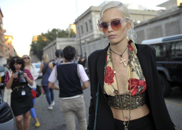 8. Model Natasha Poly leaves after the Prada Spring/Summer 2012 women's collection during Milan Fashion Week September 22, 2011. REUTERS/Paolo Bona (ITALY - Tags: FASHION ENTERTAINMENT)