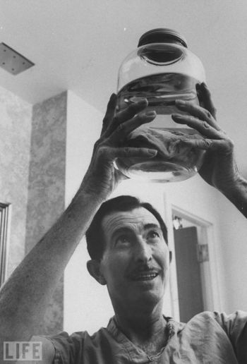 Photographic evidence of a medical first: Ralph Morse's picture of heart transplant patient George Debord examining his own (former) diseased heart.