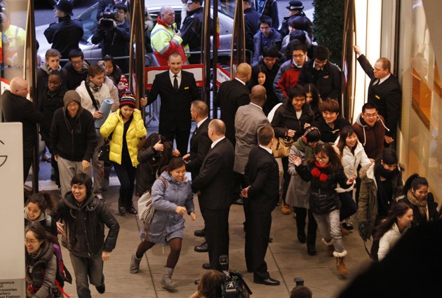 People rush into a department store as it opens for Boxing Day sales in central London, Monday, Dec. 26, 2011. Despite disruptions caused by London's subway drivers striking over a pay dispute, large crowds of shoppers started flooding department stores in London as soon as doors opened early Monday.