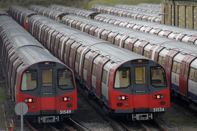 Underground trains are parked during a 24-hour strike by train drivers over public holiday pay, at Mordern depot, south London, Monday, Dec. 26, 2011.