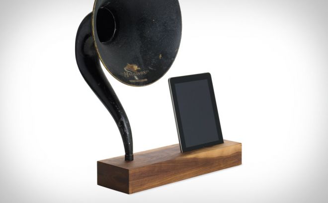 We've seen our fair share of non-electronic sound amplifiers, but never one this... grand. The iVictrola ($985) merges an antique Magnavox phonograph horn with two pieces of American walnut along with your iPad to create what's basically a giant megaphone for its normally not-that-loud speaker, filling your space with sound without using a drop of electricity. Available this November in limited numbers.