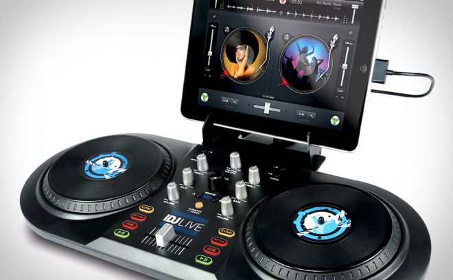 Having honed your newly-found DJ skills on your iPad using Djay, are you ready to take the next step and transfer from the virtual to real life controls? Numark iDJ Live ($100) was made for you. Developed in partnership with Algoriddim, the company behind the aforementioned Djay, the iDJ Live connects to your iPad — or iPhone, or iPod touch — via the Dock Connector, and gives you a pair of real performance platters for cueing and scratching, a central mixing section with a crossfader and plenty of buttons and knobs, and a custom audio cable for connecting to speakers and headphones. True, it's not technically a "real" DJ setup, but it's a big step in that direction.