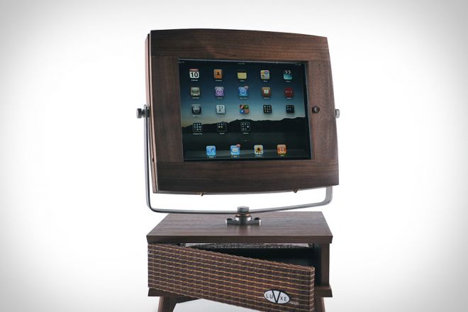 Taking the iPad-as-TV-replacement concept to its literal conclusion, the V-Luxe iPad Stand ($TBA) turns your iPad into a '50s style TV set. Available in three finishes — walnut, cherry, or African mahogany — it offers cable access for audio and power, a hidden speaker cabinet that can accomodate low-profile systems, swivel and tilt adjustments, and access to the device's screen and Home button. A great way to repurpose an aging first-gen unit, or a soon-to-be-replaced iPad 2.