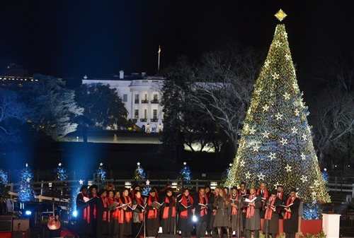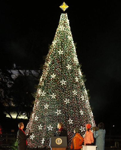 President Barack Obama lit a new National Christmas Tree at a traditional ceremony Thursday outside the White House that officially kicks off the holiday season in the nation’s capital.