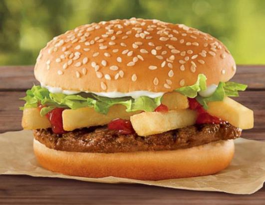 This undated photo provided by Burger King shows a a "French Fry Burger," which Burger King is rolling out on Sept. 1, 2013 for $1 as the company looks to fend off a Dollar Menu push by McDonald's.