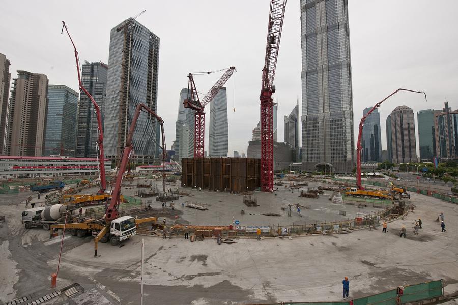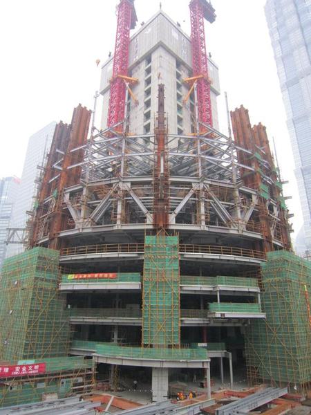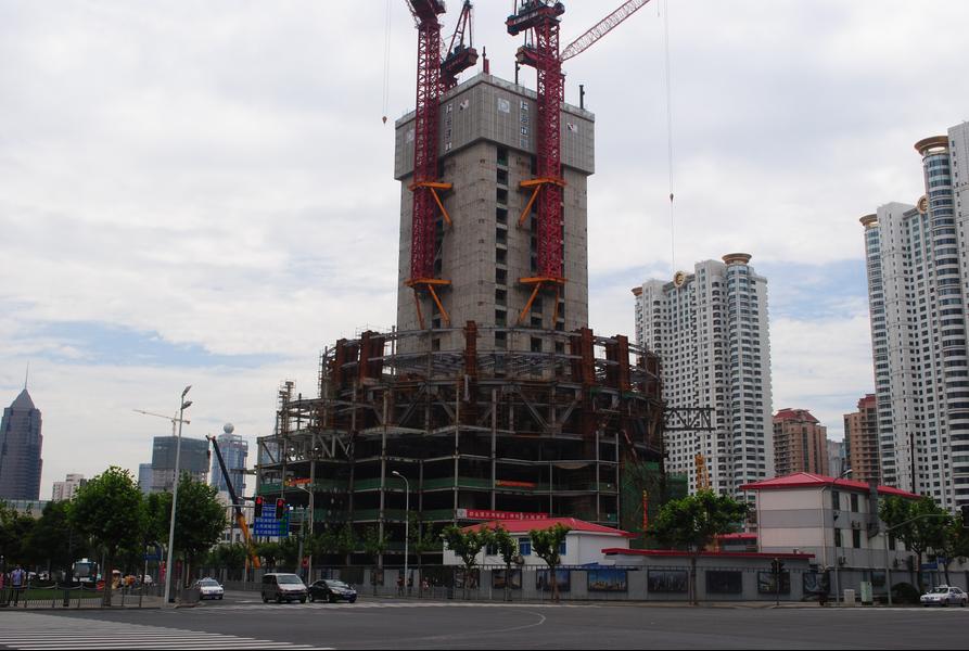 Two years after its groundbreaking, Shanghai Tower slowly rises from the ground.